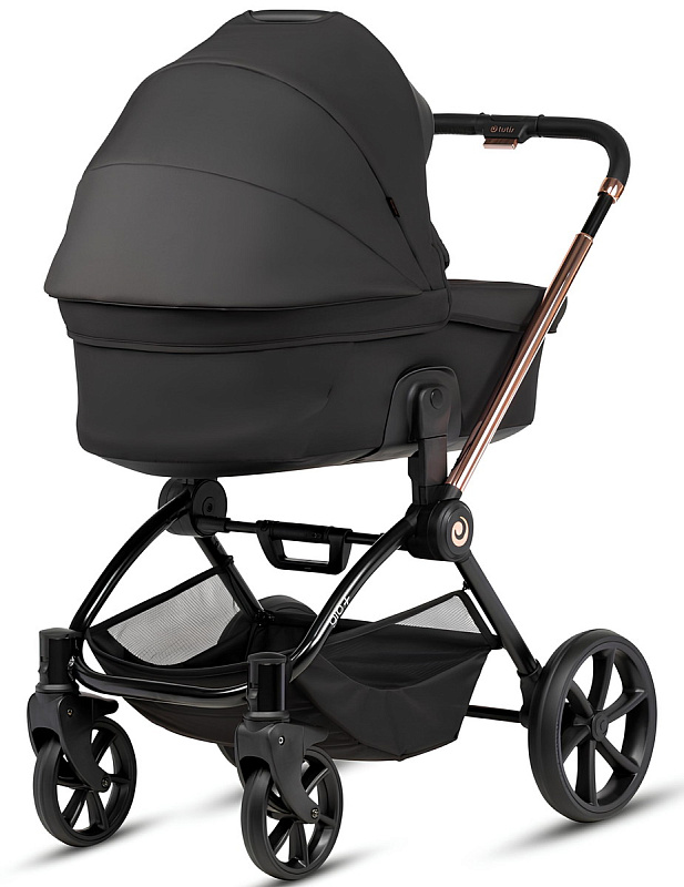 Просторную и продуманную колыбель Tutis Gio+ можно установить выше или ниже на шасси с помощью адаптеров высоты, в зависимости от роста и предпочтений родителя. Люлька отличается своими характеристиками и инновационными разработками, которые производитель использует в производстве именно этой модели. Люлька легко снимается с шасси, её можно переносить за ручку на капюшоне. Дно колыбели покатое, поэтому на полу её можно укачивать.