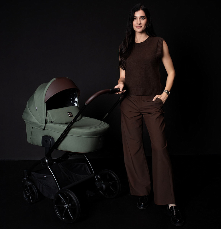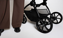 Ручка коляски покрыта мягкой экокожей и регулируется телескопически, чтобы подстроиться под разный рост родителей. Тормозная система выполнена в виде двусторонней педали, которая не пачкает вашу обувь. Вместительная корзина для покупок с сетчатыми бортиками легко доступна независимо от положения спинки сиденья.