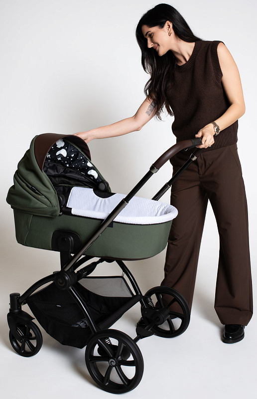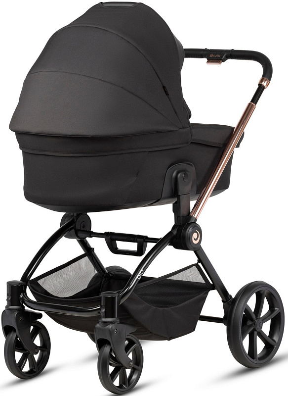 Просторную и продуманную колыбель Tutis Gio+ можно установить выше или ниже на шасси с помощью адаптеров высоты, в зависимости от роста и предпочтений родителя. Люлька отличается своими характеристиками и инновационными разработками, которые производитель использует в производстве именно этой модели. Люлька легко снимается с шасси, её можно переносить за ручку на капюшоне. Дно колыбели покатое, поэтому на полу её можно укачивать.