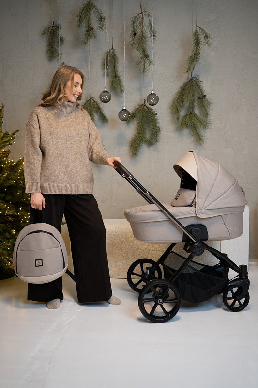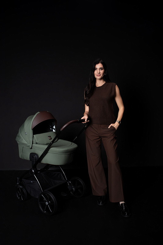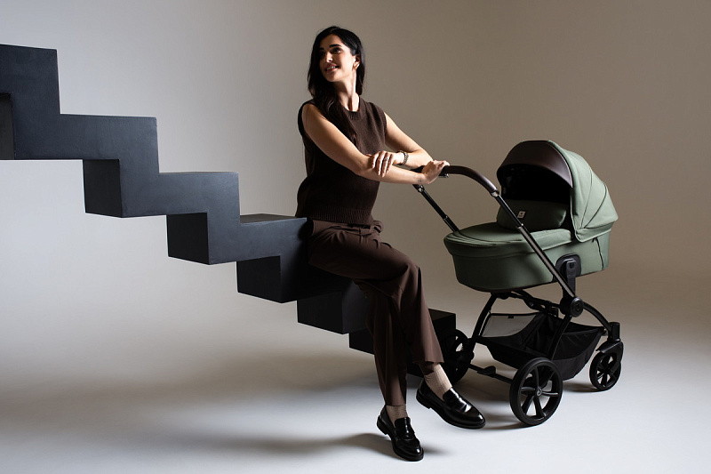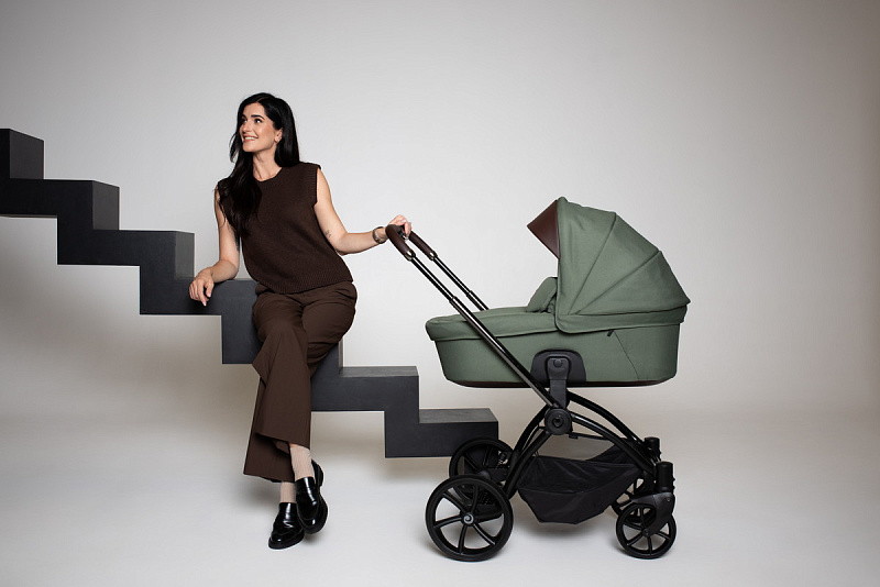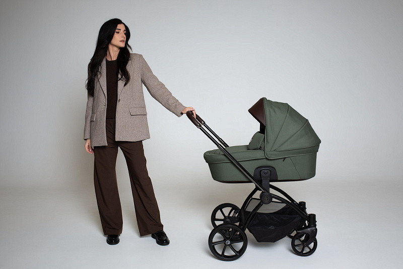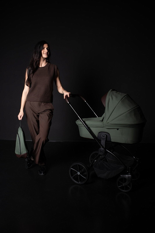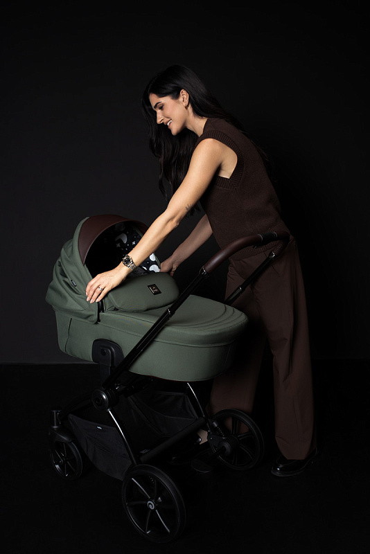 Ручка коляски покрыта мягкой экокожей и регулируется телескопически, чтобы подстроиться под разный рост родителей. Тормозная система выполнена в виде двусторонней педали, которая не пачкает вашу обувь. Вместительная корзина для покупок с сетчатыми бортиками легко доступна независимо от положения спинки сиденья.