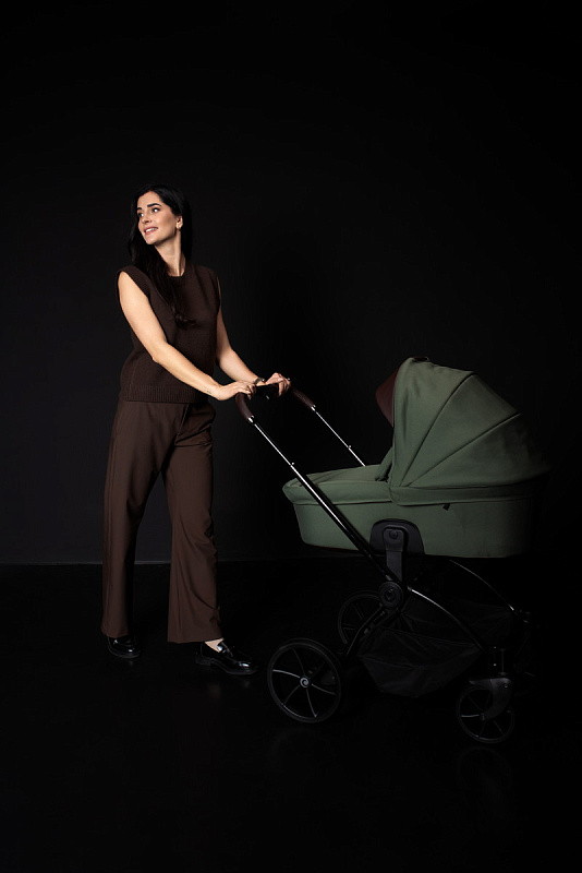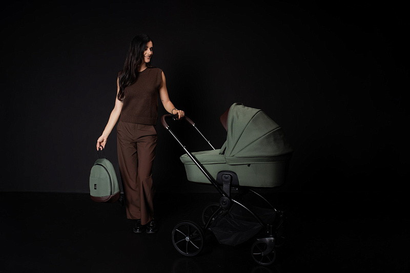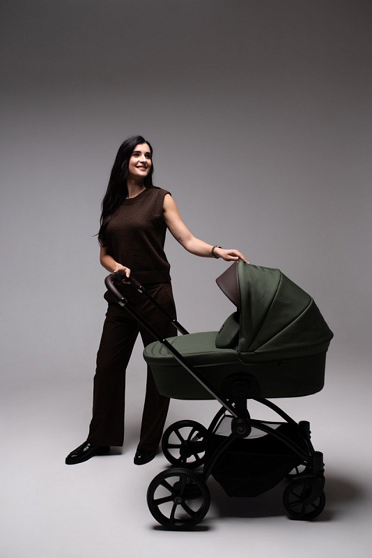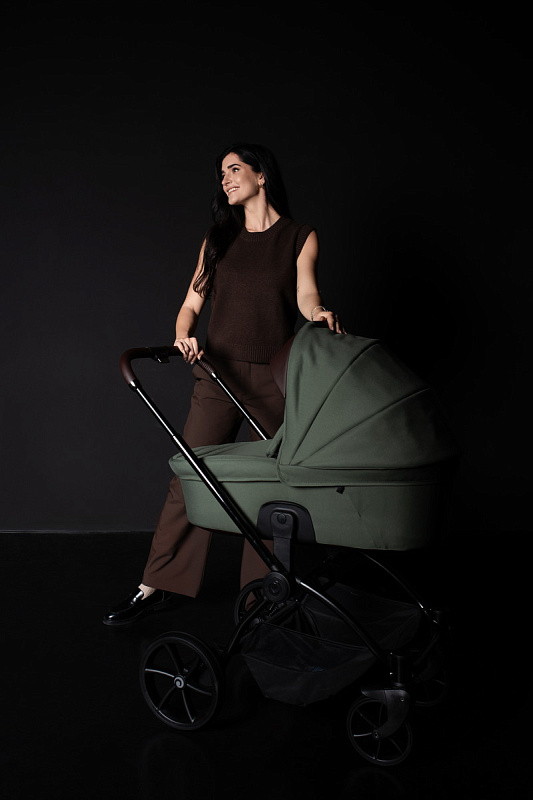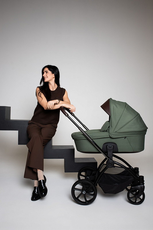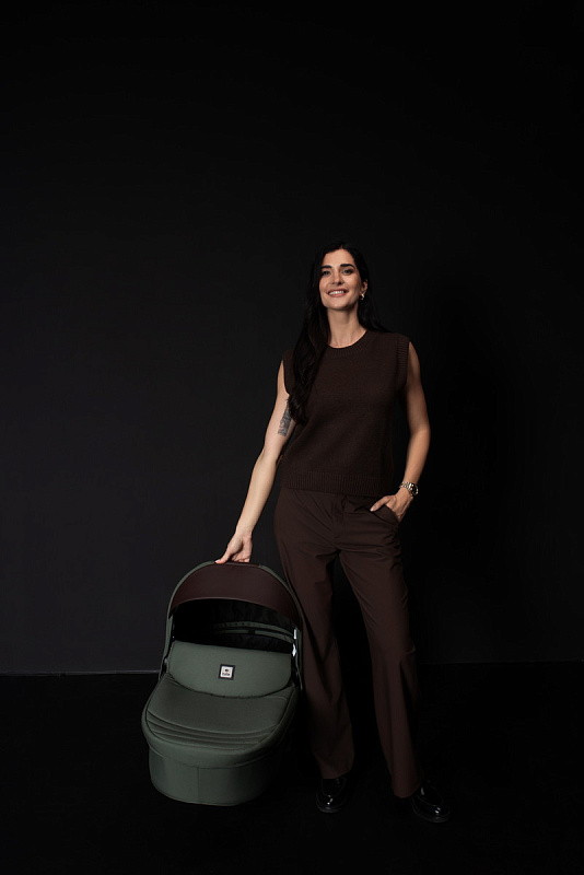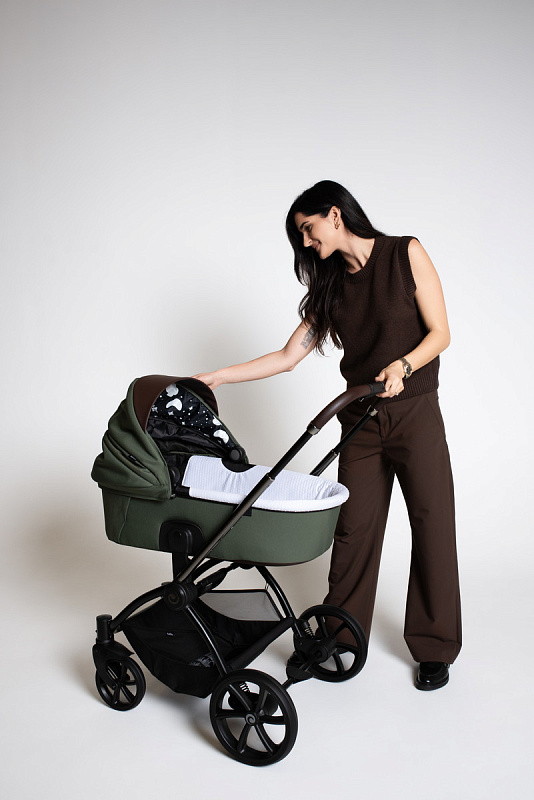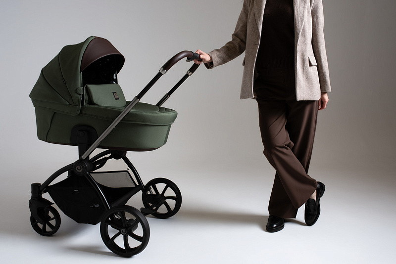 Ручка коляски покрыта мягкой экокожей и регулируется телескопически, чтобы подстроиться под разный рост родителей. Тормозная система выполнена в виде двусторонней педали, которая не пачкает вашу обувь. Вместительная корзина для покупок с сетчатыми бортиками легко доступна независимо от положения спинки сиденья.