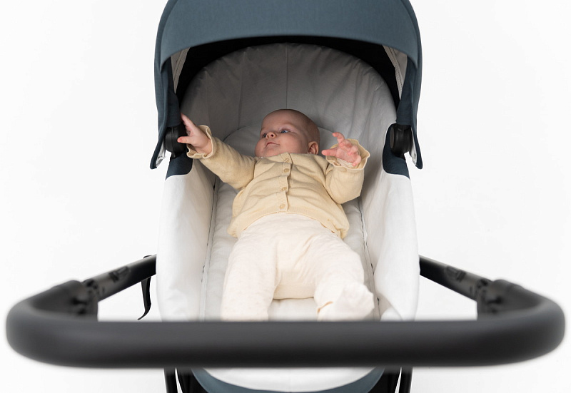 Мягкий козырёк от солнца задвигается и раскладывается одним движением.