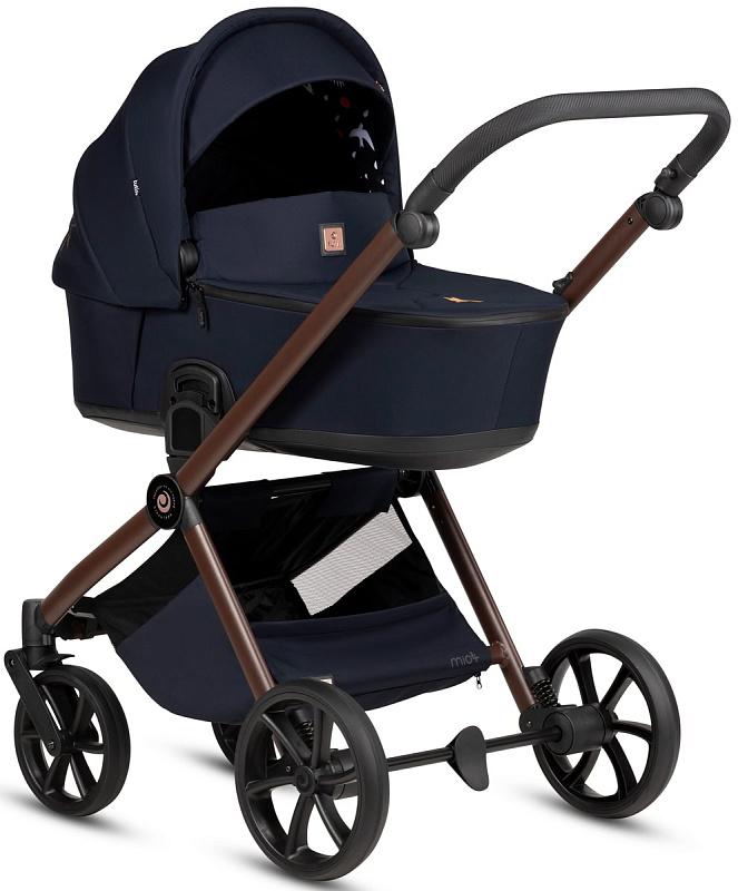 Коляска Mio3+ оснащена двойной системой амортизации: амортизаторы на передних колесах и адаптивная система амортизации на задних колесах обеспечивают плавные и комфортные прогулки с превосходной маневренностью.