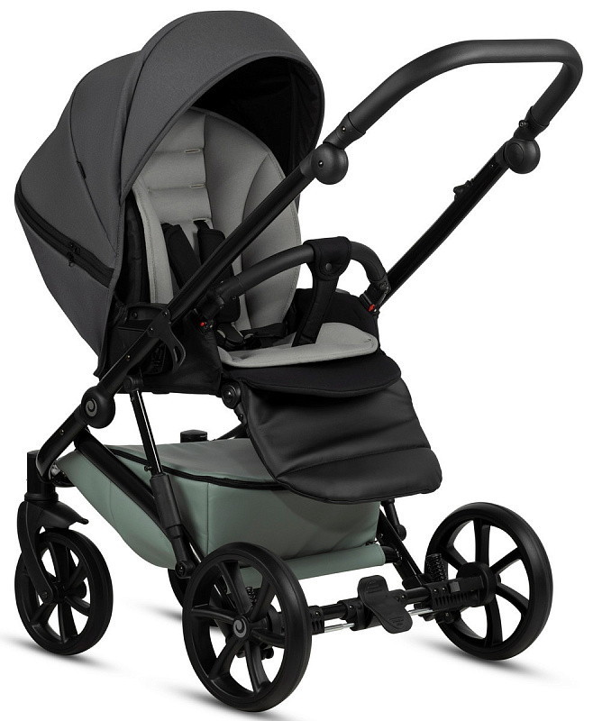 Спинка блока раскладывается до горизонтального положения. При необходимости удлинить спальное место, достаточно поднять регулируемую подножку. Подножка обшита качественной эко-кожей, что облегчает уход за коляской.
