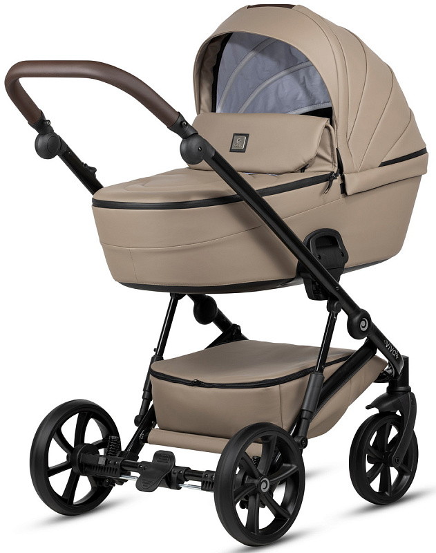 Детская коляска Tutis Viva 5 Plus Leather 2024 3 в 1 с автокреслом Elo Lux EduSky Black 1452149 Cappuccino