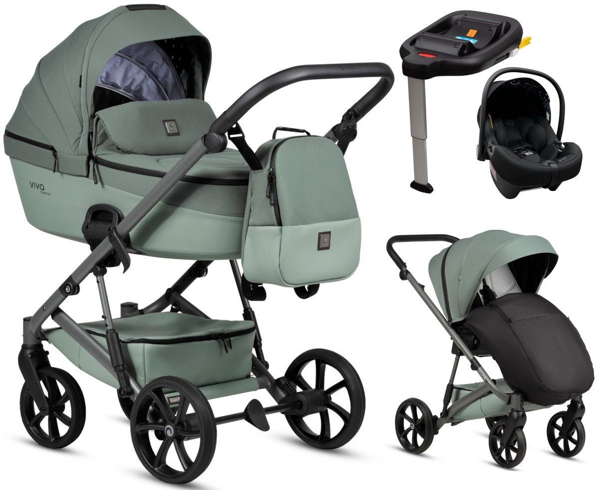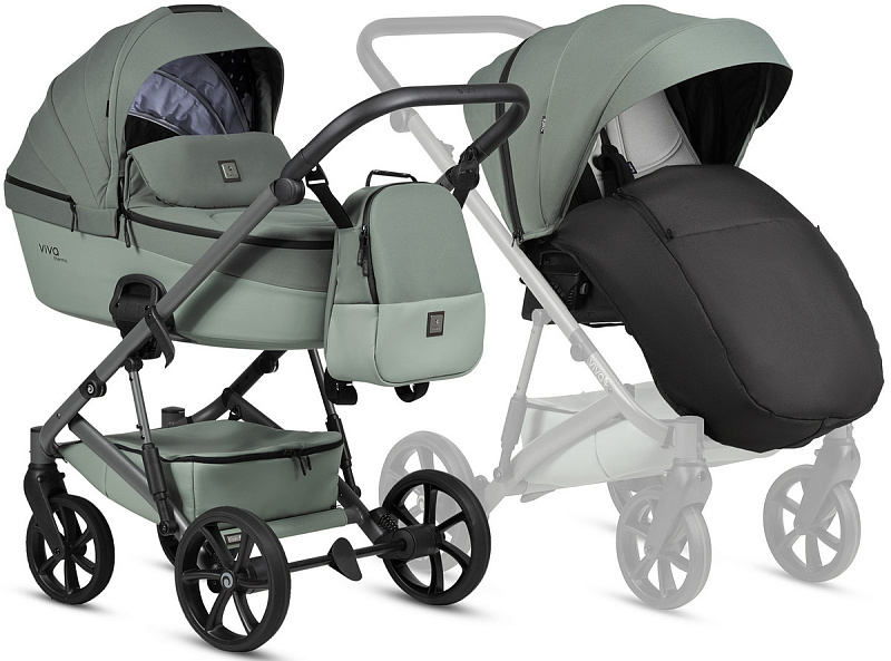 Детская коляска Tutis Viva 6 Plus Essential 4 в 1 с автокреслом Elo Lux EduSky Black с базой 1612039 Sage