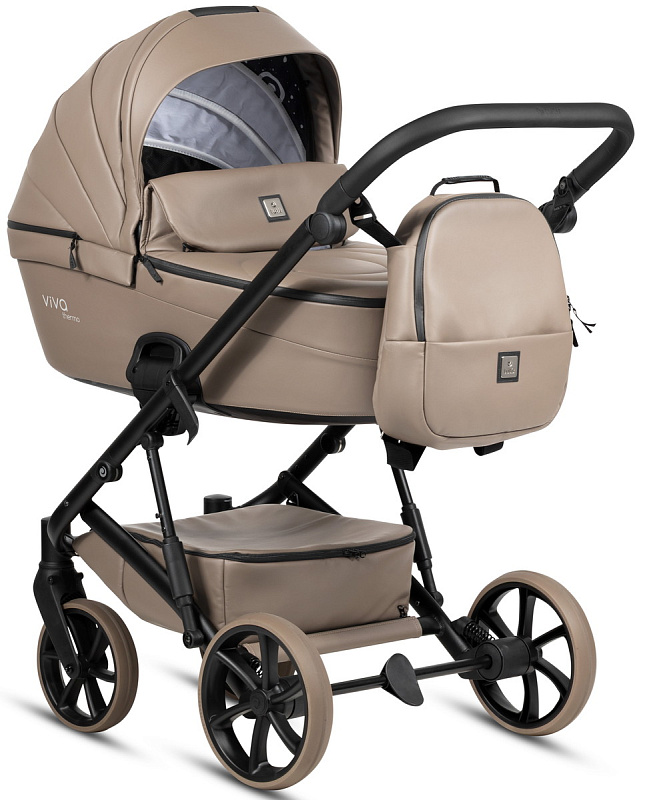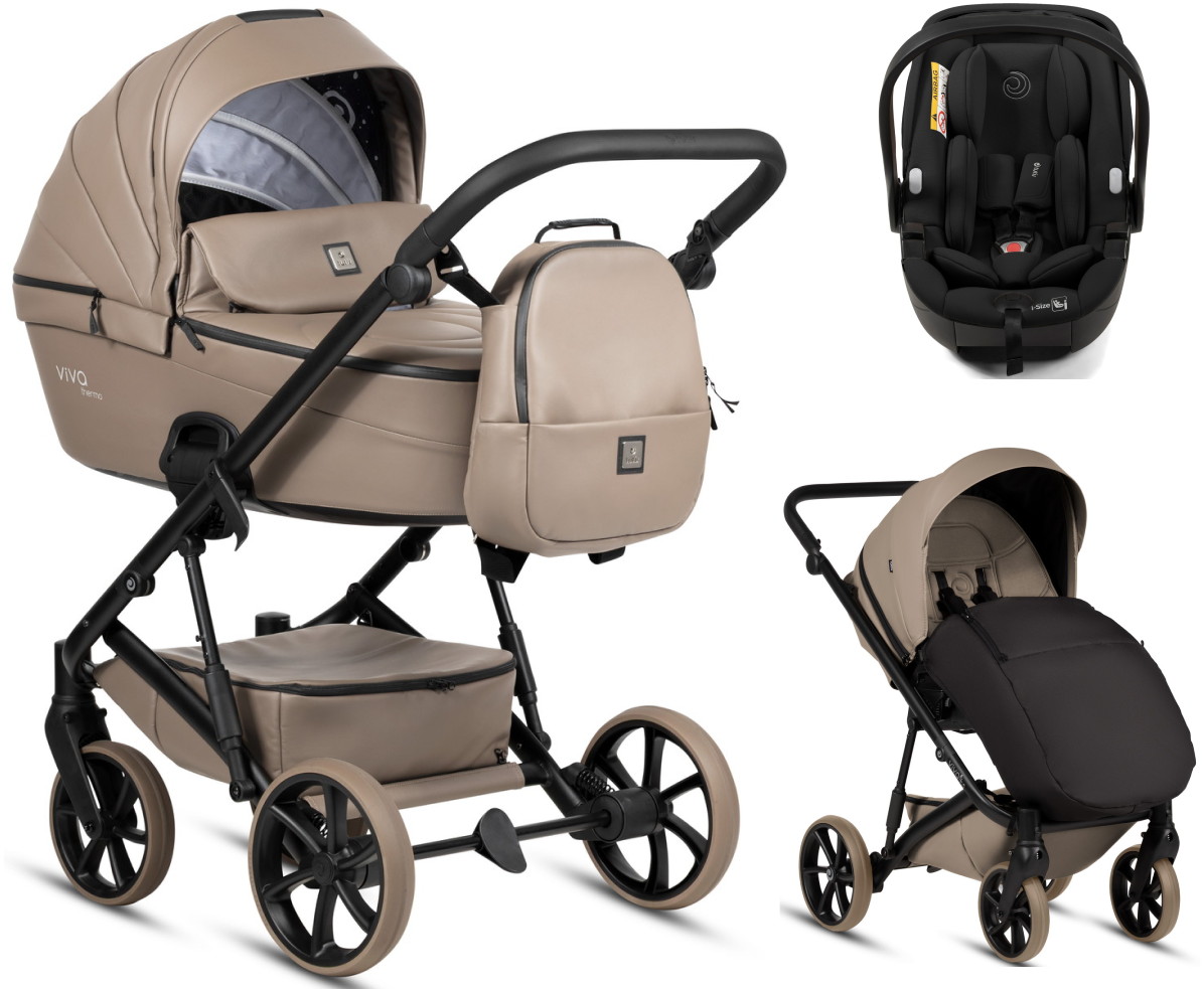 Детская коляска Tutis Viva 6 Plus Leather 3 в 1 с автокреслом Beno Black 1612149 Cappuccino