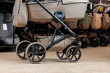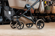 Передняя подвеска в сочетании с шасси и задней подвеской обеспечивает плавность хода, сравнимую с ходом классической коляски.