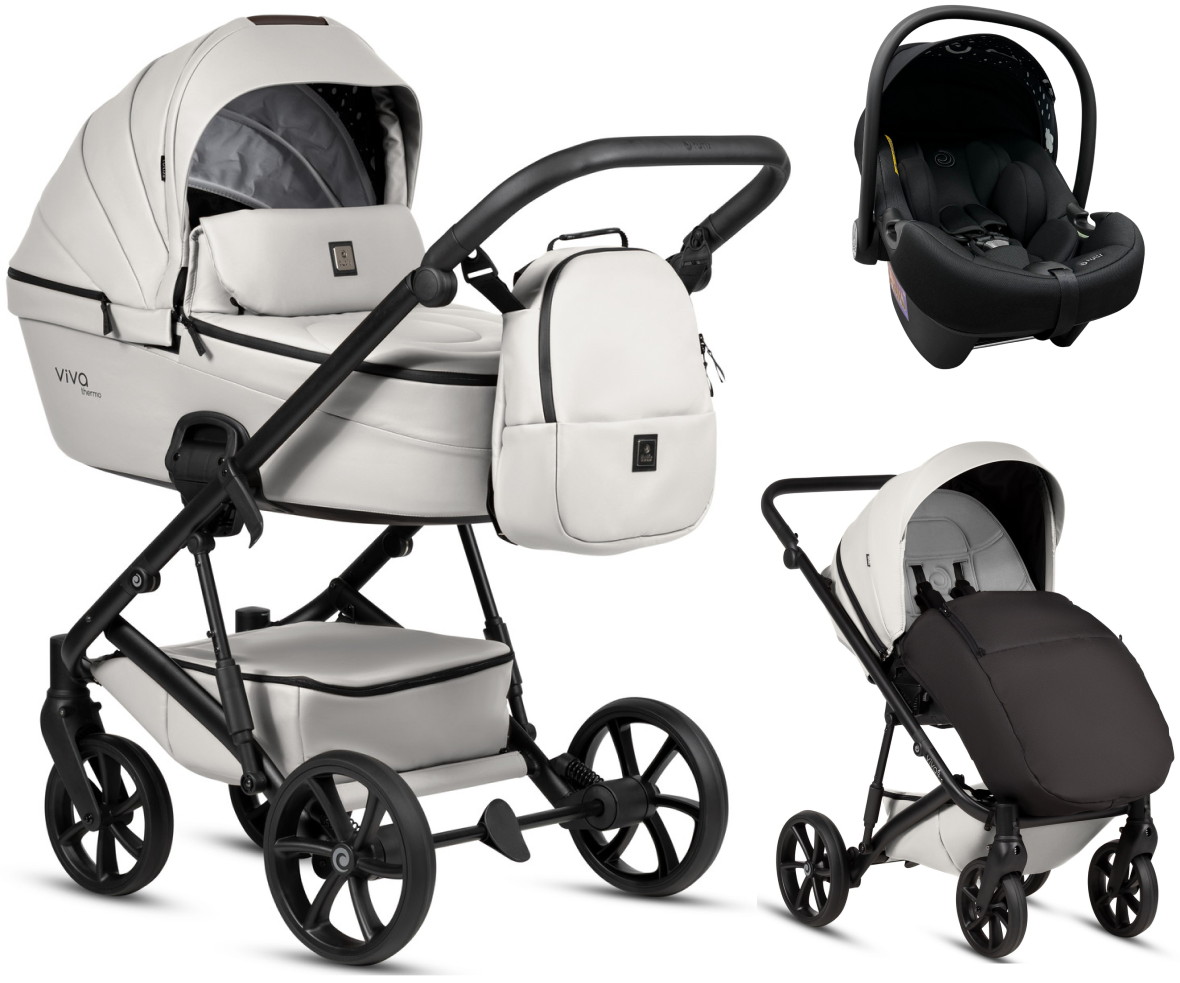 Детская коляска Tutis Viva 6 Plus Leather 3 в 1 с автокреслом Elo Lux EduSky Black 1612085 Cloud