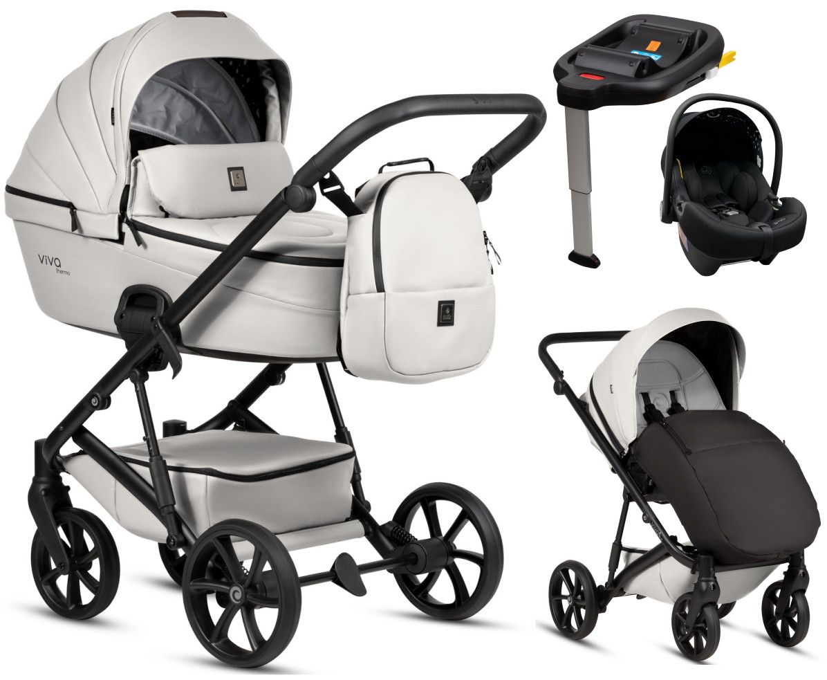 Детская коляска Tutis Viva 6 Plus Leather 4 в 1 с автокреслом Elo Lux EduSky Black и базой 1612085 Cloud