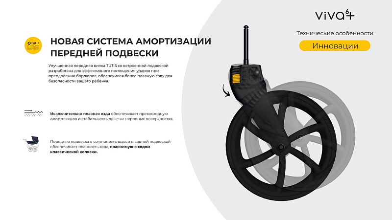 Передняя подвеска в сочетании с шасси и задней подвеской обеспечивает плавность хода, сравнимую с ходом классической коляски.