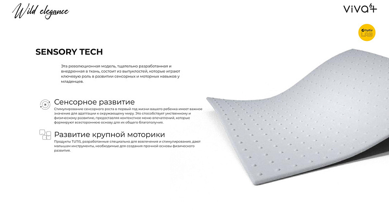 Эта революционная модель, тщательно разработанная и внедренная в ткань, состоит из выпуклостей, которые играют ключевую роль в развитии сенсорных и моторных навыков у младенцев.