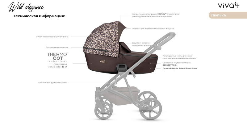 Каждая деталь тщательно продумана, от роскошных текстур до специально созданного внутреннего узора EDUSKYтм, разработанного для привлечения внимания и успокоения вашего ребенка. Wild Elegance это заявление о уверенности и индивидуальности, где необузданное вдохновение сочетается с повседневным комфортом и безопасностью.