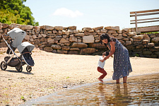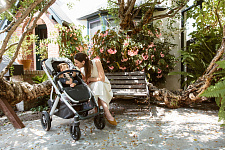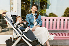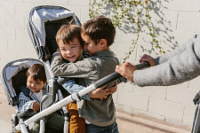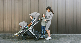 Благодаря мягким шинам и новой пружинной амортизации на всех колесах коляска сохраняет плавный ход во время прогулок независимо от дорожного покрытия и количества детей внутри.