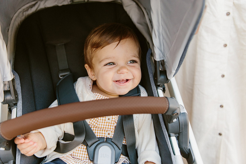 Всю систему ремней в прогулочном блоке можно подтянуть или ослабить одним движением, обеспечивая ребенку комфортную и безопасную поездку.