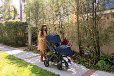 Благодаря мягким шинам и новой пружинной амортизации на всех колесах коляска сохраняет плавный ход во время прогулок независимо от дорожного покрытия и количества детей внутри.