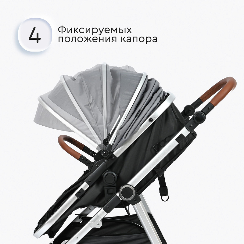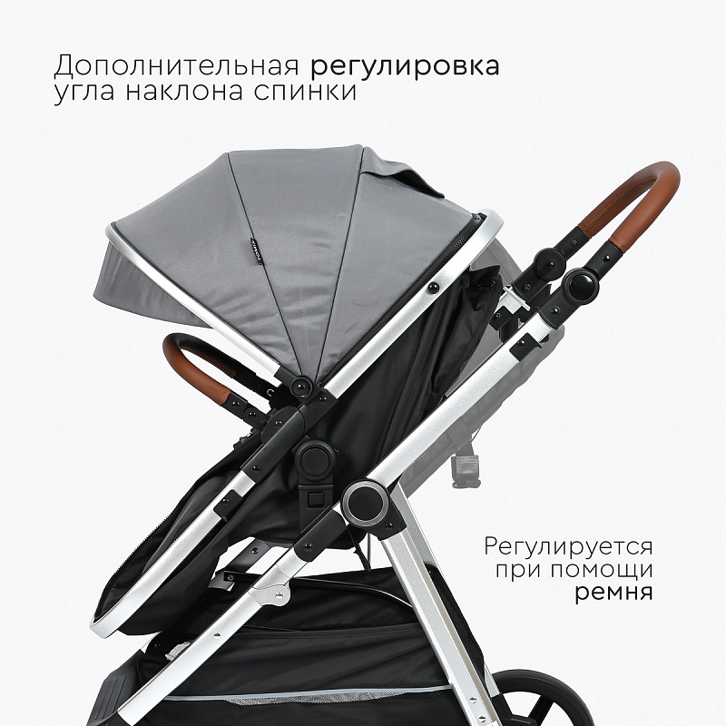 Система регулирования наклона спинки позволит малышу занять удобное положение во время прогулки или сна.