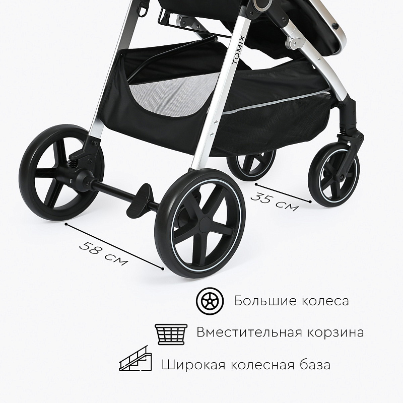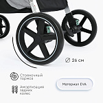 - поворотные передние колеса с фиксацией диаметром 18 см, задние колеса – 26 см, материал колес — EVA;