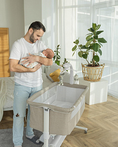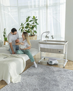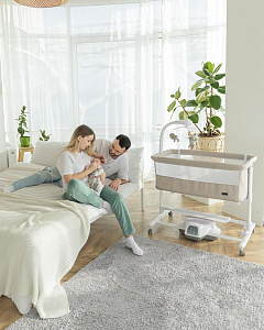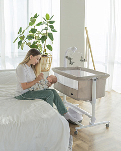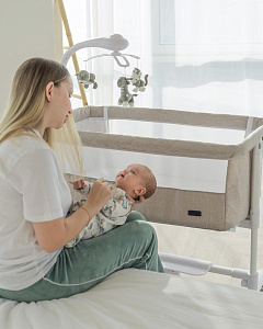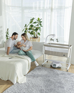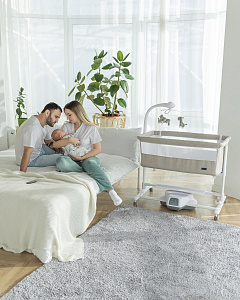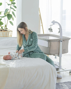 Детская колыбель Carrello Bloom CRL-10304 - это уникальная приставная кроватка, которая обладает рядом инновационных функций, созданных для обеспечения комфорта и безопасности вашего малыша. Она предназначена для использования с самого рождения и до 12 месяцев, и может быть использована как отдельно стоящая кроватка или приставная кроватка для совместного сна с родителями.