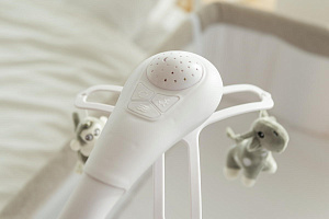 Carrello Bloom также поставляется с пультом дистанционного управления, который позволяет вам контролировать функции колыбели из любого места в комнате. Вы можете регулировать уровень укачивания, скорость и даже включать и выключать мобиль-карусель и ночник-проектор с помощью этого удобного пульта.
