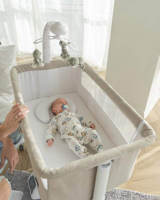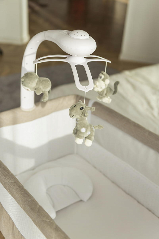 В комплекте с колыбелью Carrello Bloom поставляется мобиль-карусель с тремя игрушками и ночником-проектором. Это не только развлечет вашего ребенка, но и создаст уютную атмосферу для его сна. Кроме того, в комплект входят матрасик с наматрасником и подушка под голову, чтобы обеспечить максимальный комфорт вашему малышу.
