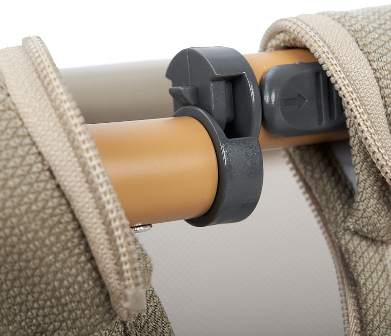 Всегда рядом: Специальная система крепления (ремни) позволяет быстро приставить колыбель вплотную к вашей кровати. Боковой бортик опускается на молнии, создавая единое пространство.