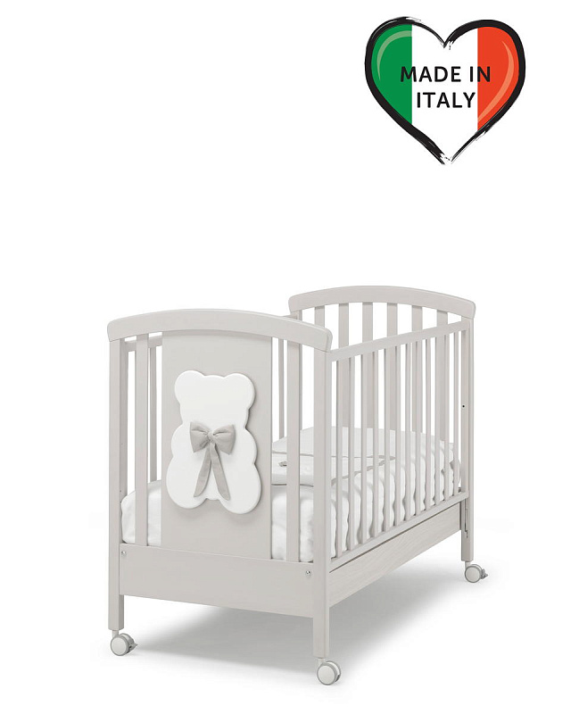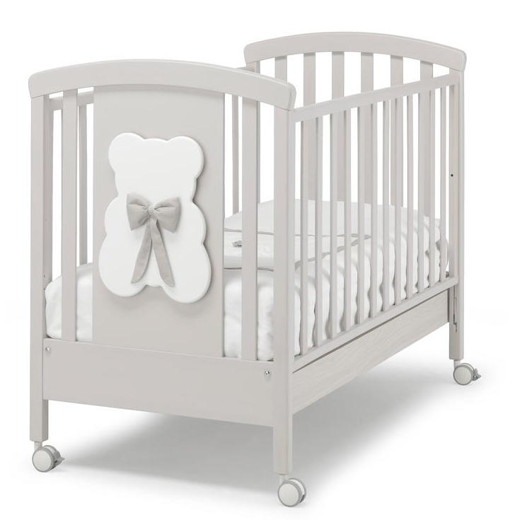 Кровать для ребенка с рождения Erbesi Dudu украшена аппликацией медвежонка с бантиком. Это классическая мебель на колесиках с двумя стопорами и резиновыми накладками. Боковые стенки регулируются системой secur-baby. Вы сможете одной рукой опустить и поднять боковину. Мебель изготовлена из натурального бука, окрашена не причиняющими вреда здоровью ребенка красками, покрыта экологичными лаками.