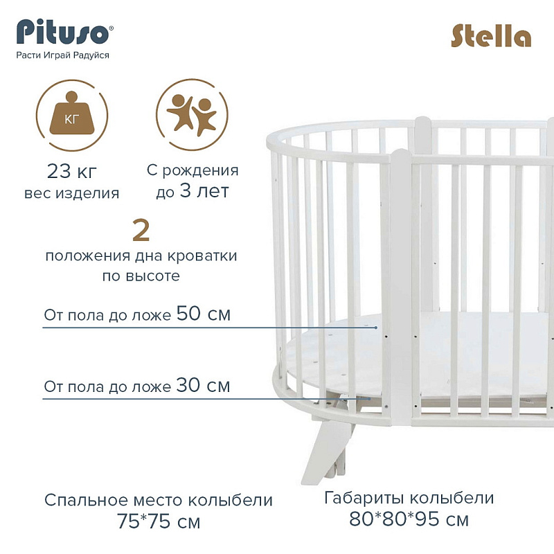 Детская кровать трансформер Pituso Stella 6 в 1 106501 Белый-Белый
