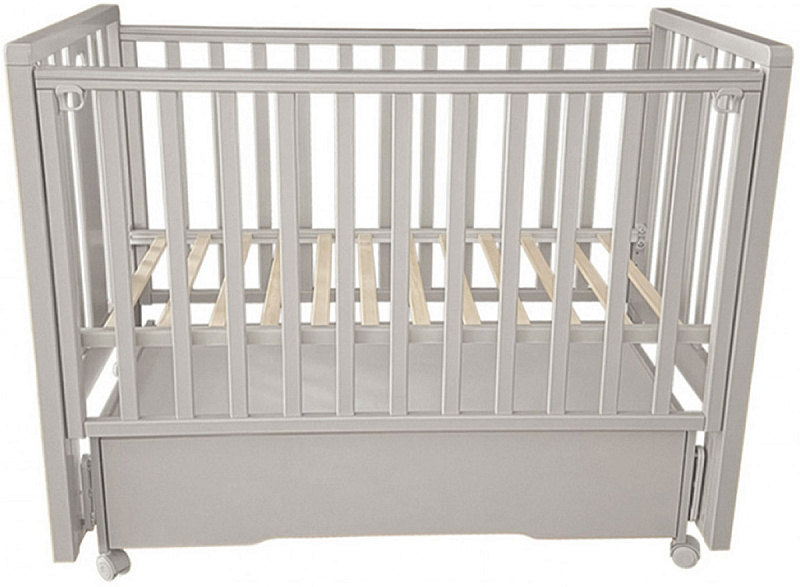 Кроватка изготовлена из массива березы и ЛДСП, что гарантирует ее прочность, долговечность и экологичность. Накладки ПВХ на бортиках защищают нежные десны малыша в период прорезывания зубов. Спальное место размером 1200х600 мм обеспечивает достаточно пространства для комфортного сна и отдыха.