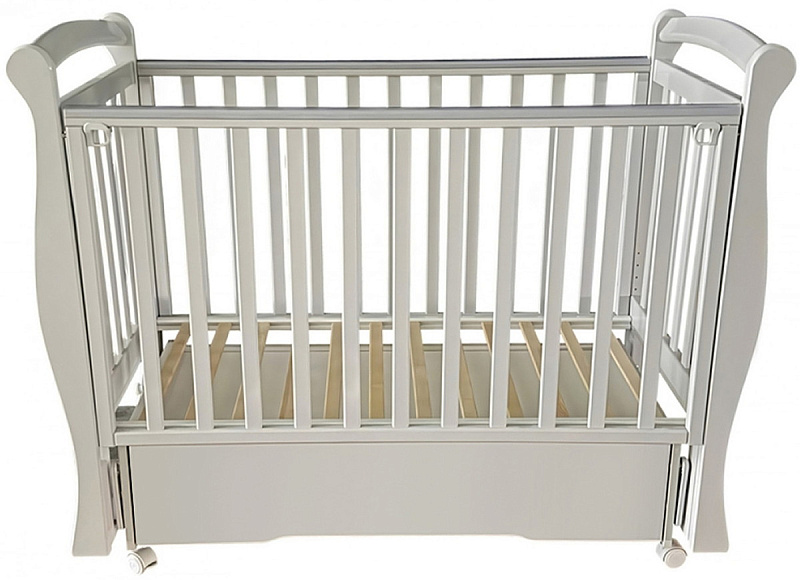 Кроватка изготовлена из массива березы и ЛДСП, что гарантирует ее прочность, долговечность и экологичность. Накладки ПВХ на бортиках защищают нежные десны малыша в период прорезывания зубов. Спальное место размером 1200х600 мм обеспечивает достаточно пространства для комфортного сна и отдыха.