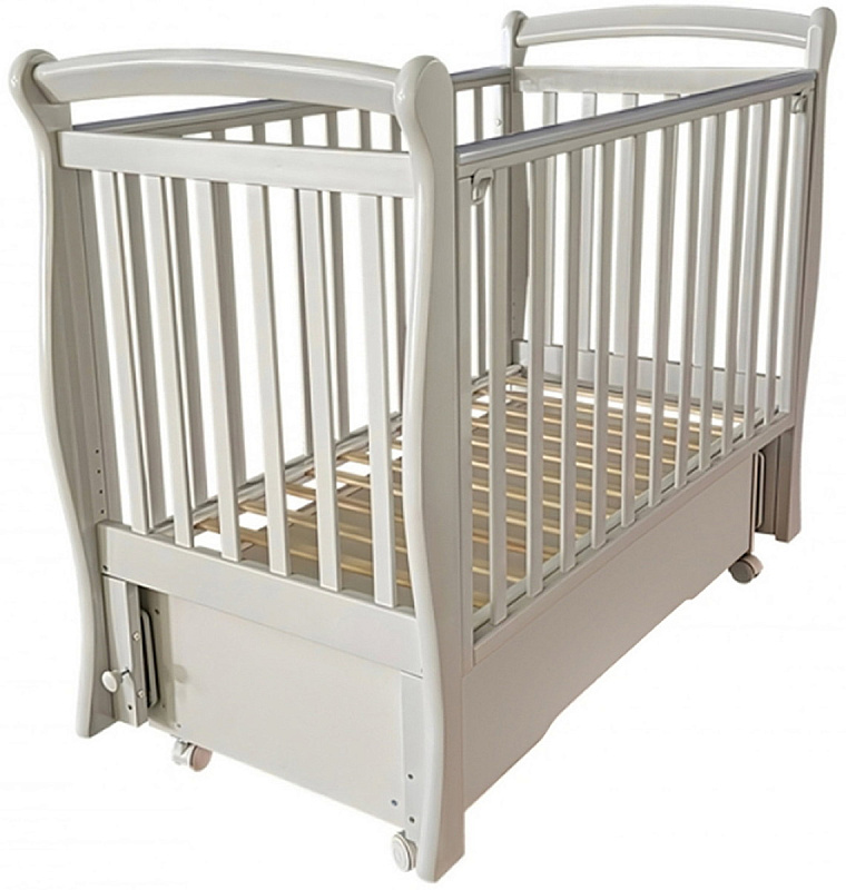 Оснащенная универсальным маятниковым механизмом, кроватка позволяет укачивать малыша как в продольном, так и в поперечном направлении, имитируя ласковые объятия мамы. Фиксатор маятника обеспечивает устойчивость, когда качание не требуется.