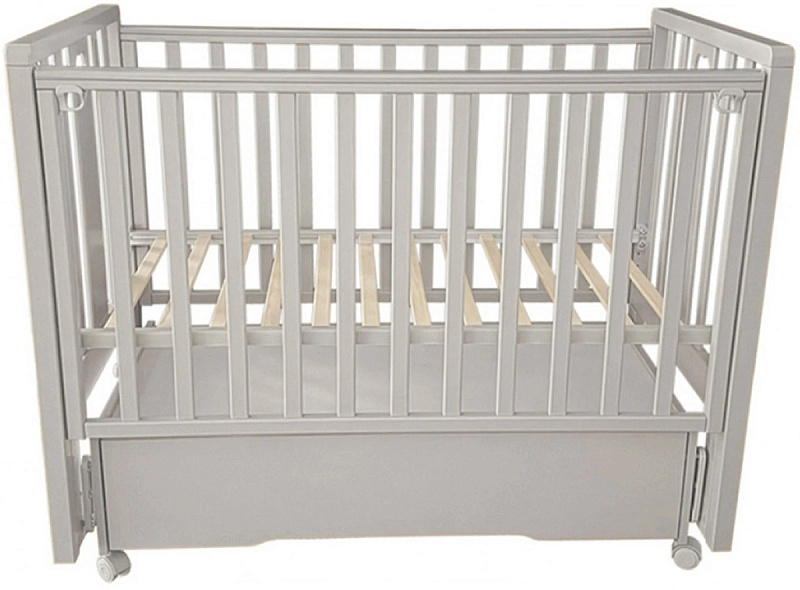 Реечное ложе с двумя уровнями высоты растёт вместе с ребёнком, обеспечивая комфорт и безопасность на каждом этапе развития. Съемная передняя стенка с двумя положениями позволяет легко укладывать и доставать малыша, бережно охраняя его сон.