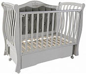 Кроватка оснащена универсальным маятниковым механизмом с возможностью продольного и поперечного качания, а также колесами для удобного перемещения. Съемная передняя стенка с механизмом автостенки облегчает ежедневный уход за малышом. Реечное ложе регулируется по высоте в двух положениях и подходит для использования на разных этапах роста ребенка.