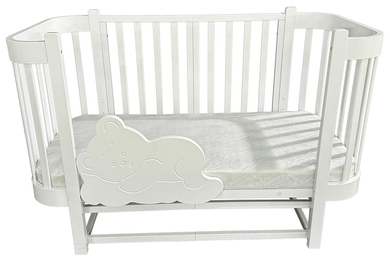 Новая кроватка Nezabudka 3 в 1 с комплектом для трансформации из кровати с размером спального места 910х700 мм до спального места размером 1400х700 мм. Впоследствии переднее ограждение можно убрать и использовать защитный бортик, который также идет в комплекте. Модель укомплектована продольным маятником, благодаря чему можно укачивать малыша. Также в комплекте есть колеса со стопорами для удобного перемещения кровати по комнате. Колеса и маятник можно использовать только раздельно друг от друга! Кровать выполнена из натуральных материалов и покрыта гипоалергенной краской, что абсолютно безопасно для Вашего малыша.