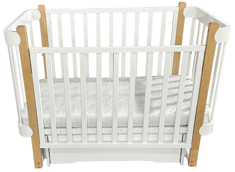 Детская кроватка Антел Solnyshko 2 поперечный маятник с ящиком белый/бук