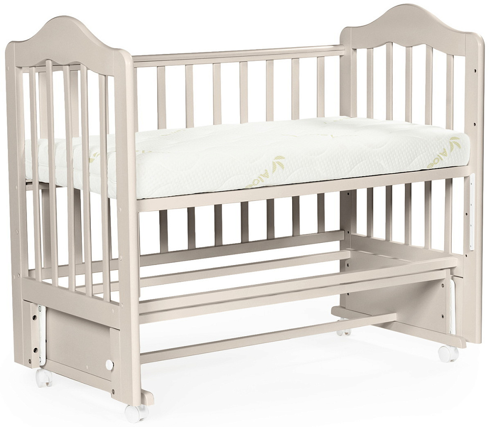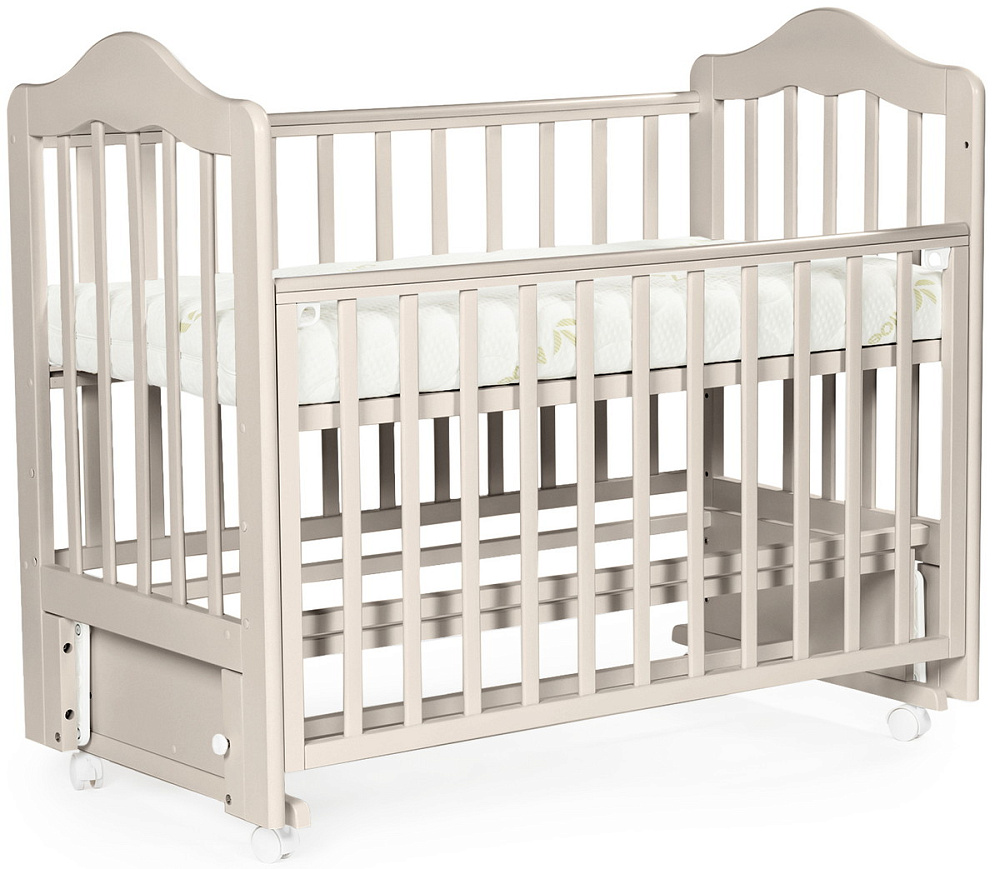 Детская кроватка Bebizaro Fillmore маятник универсальный. Это функциональная кроватка, продуманная до мелочей, это максимальный комфорт и безопасность для вашего малыша. Каркас кроватки выполнен из массива берёзы. Для удобства родителям, боковая стенка кроватки регулируется по высоте. Модель оборудована колёсами для её перемещения по комнате.