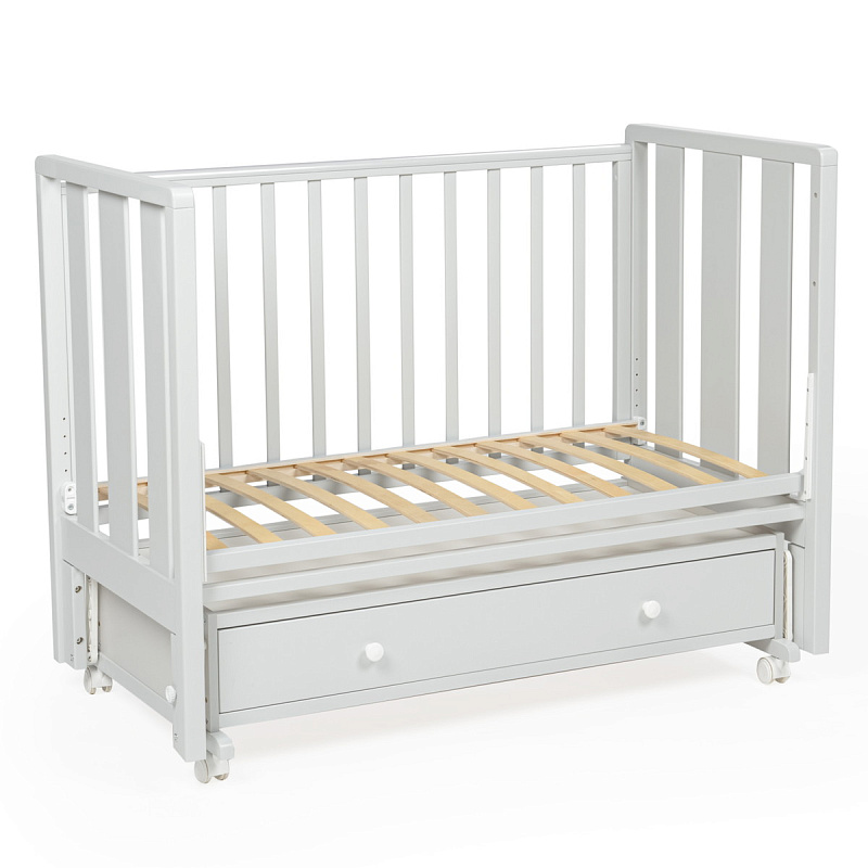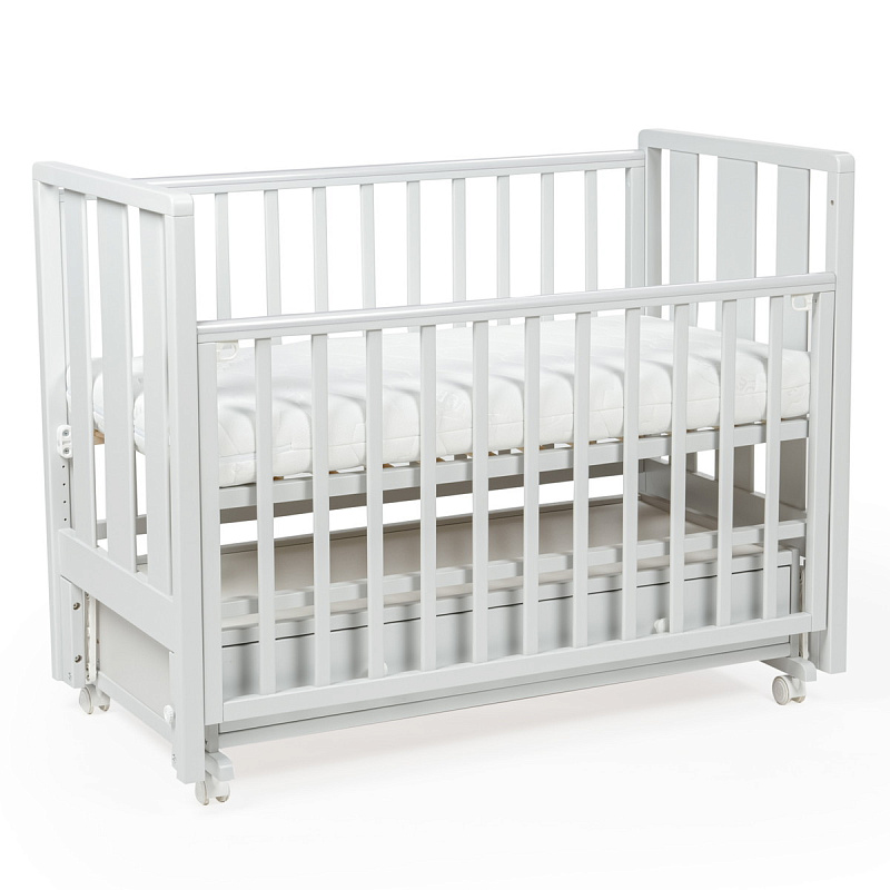 Детская кровать BEBIZARO HEIRLOOM NEW– c универсальным маятником и ящиком. Это функциональная кроватка, продуманная до мелочей, это максимальный комфорт и безопасность для вашего малыша. Каркас кроватки выполнен из массива берёзы. Для удобства родителям, боковая стенка кроватки регулируется по высоте. Модель оборудована вместительным и практичным ящиком для хранения, а также колёсами для её перемещения по комнате.