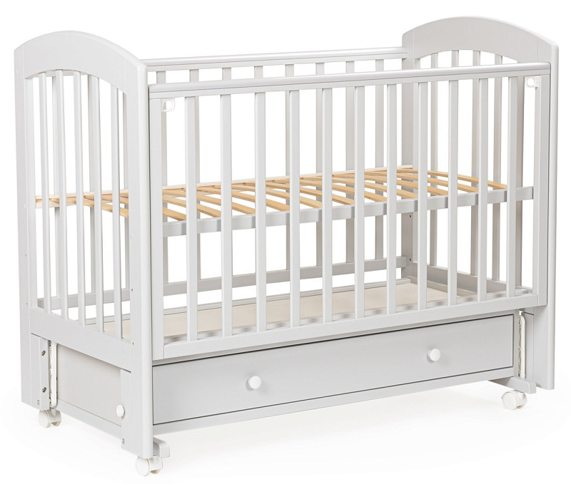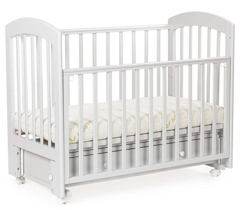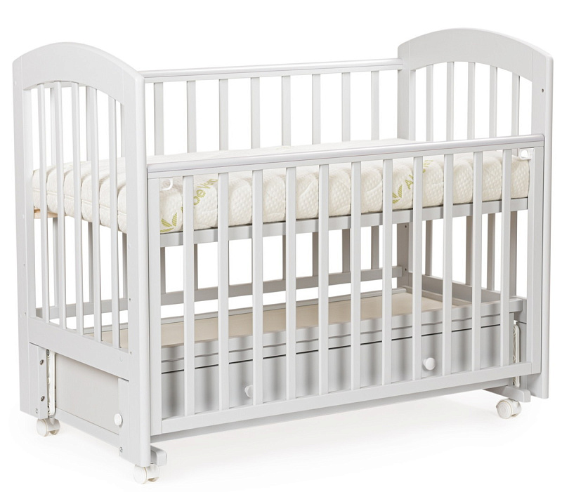 Детская кроватка Bebizaro Regency маятник универсальный с ящиком. Это функциональная кроватка, продуманная до мелочей, это максимальный комфорт и безопасность для вашего малыша. Каркас кроватки выполнен из массива берёзы. Для удобства родителям, боковая стенка кроватки регулируется по высоте. Модель оборудована вместительным и практичным ящиком для хранения, а также колёсами для её перемещения по комнате.