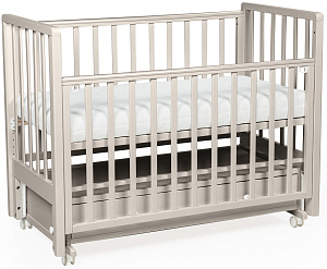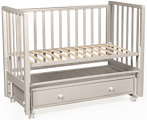 Bebizaro Regency – детская кроватка со встроенным маятником и удобным ящиком. Эта кроватка была разработана идеально до мельчайших деталей, предоставляя максимальный комфорт и безопасность Вашему малышу. Каркас кроватки изготовлен из массива березы. Благодаря регулируемым боковым стенкам Вы можете легко настроить высоту кроватки для Вашего удобства. Кроме того, модель оснащена вместительным ящиком для хранения и удобными колесиками для легкой мобильности по комнате.