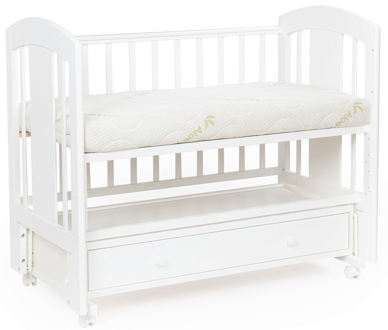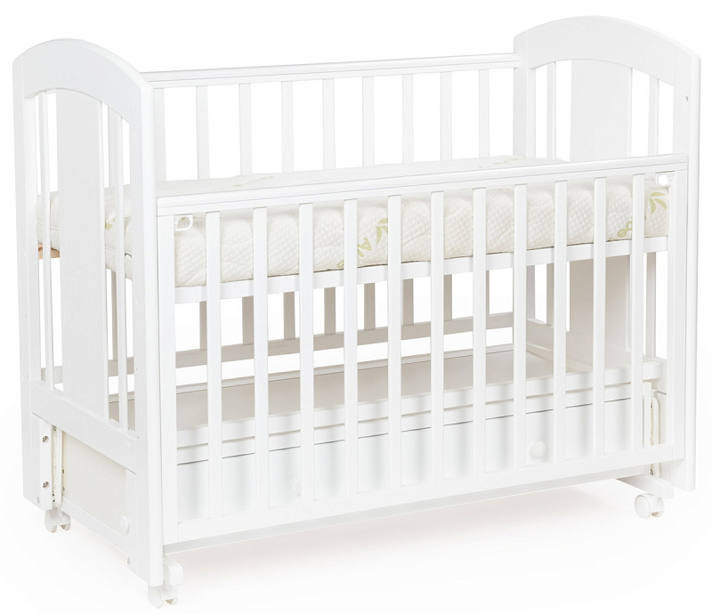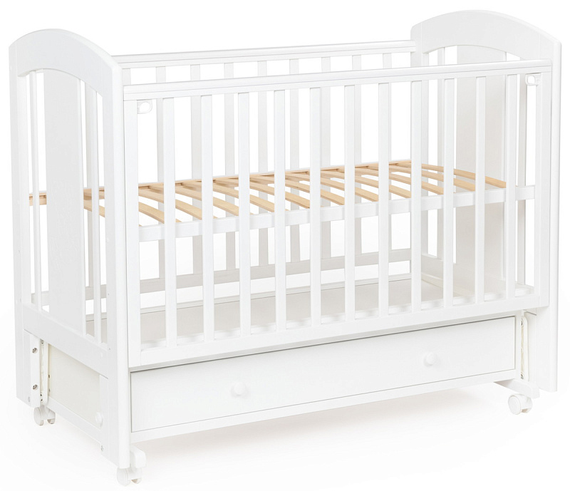 кроватка имеет удобный и практичный ящик для хранения белья;