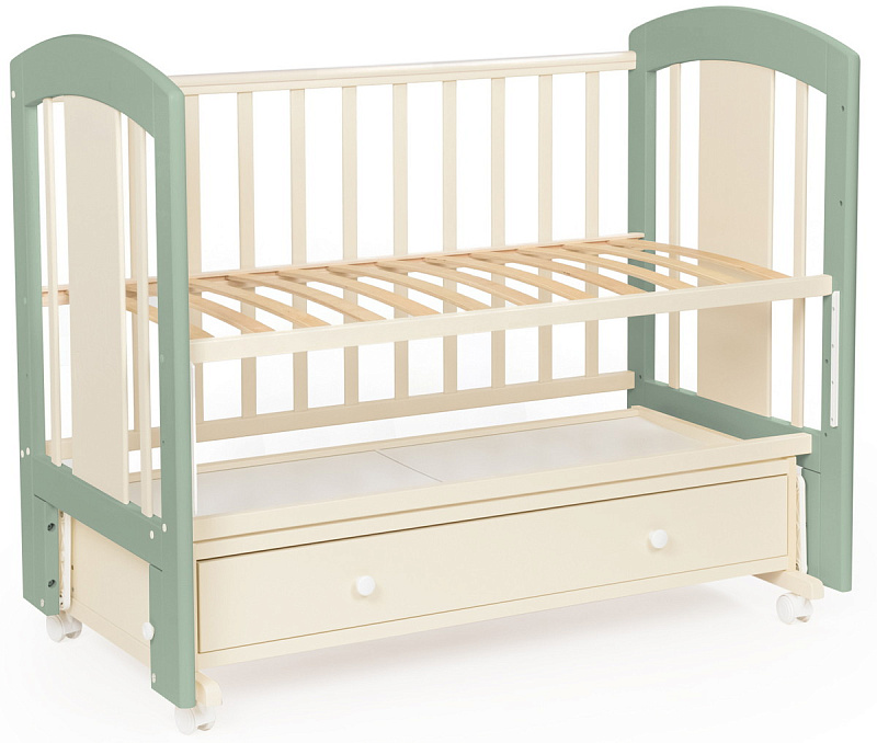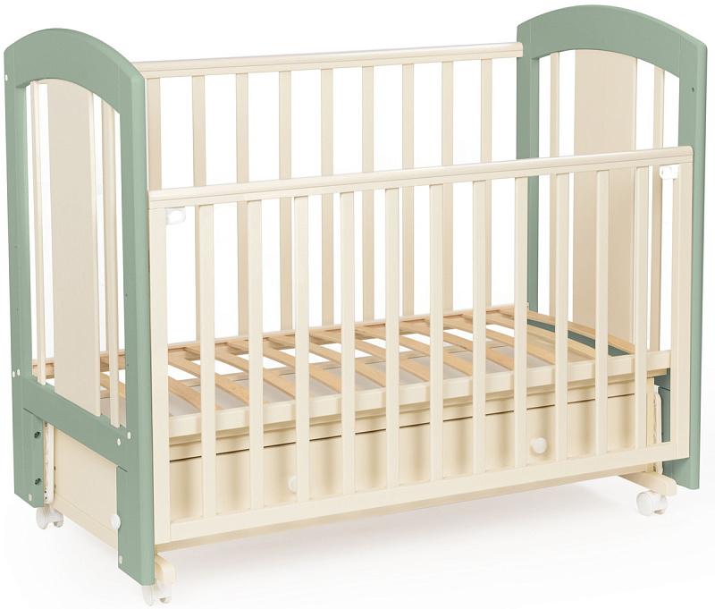 кроватка имеет удобный и практичный ящик для хранения белья;