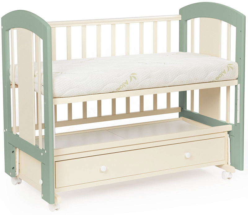 Детская кроватка Bebizaro Regency Teddy маятник универсальный с ящиком BZRYTYMYA/08/VA/OL Vanilla/olive