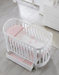 Овальный матрас Ariel входит в комплект кроватки и имеет размеры 128х60.