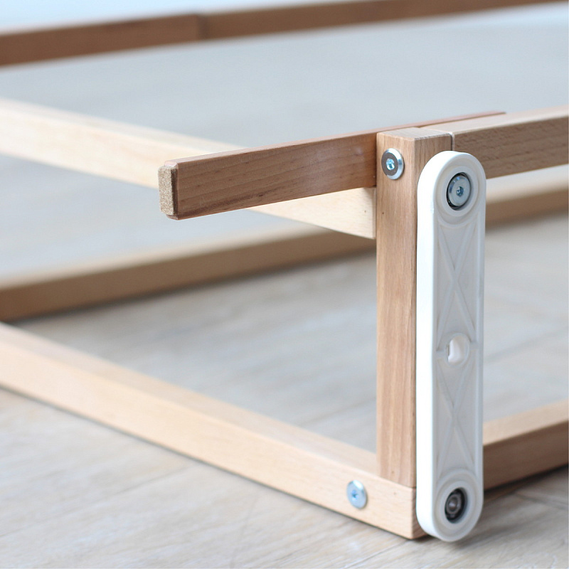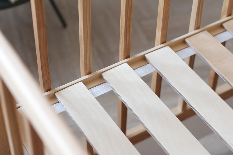 У детской кровати Onlybaby Scandi нет острых углов: закругленные края не только повышают безопасность, но и делают строгую геометрию более мягкой. Боковые стенки имеют увеличенное расстояние между рейками - 7,8 см. Ложе имеет три положения, верхнее для новорожденных, среднее положение для деток от 6 месяцев и нижнее положение для детей от 1 года до 5 лет, оно также позволяет использовать кроватку в качестве манежа. Передняя решётка легко убирается, чтобы было удобно придвинуть кровать поближе к родительской и обеспечить контакт с мамой.