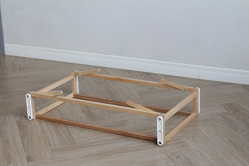 Изделие выполнено из массива бука, а механизм из пластика. Наличие стопоров позволяет при необходимости остановить качание.