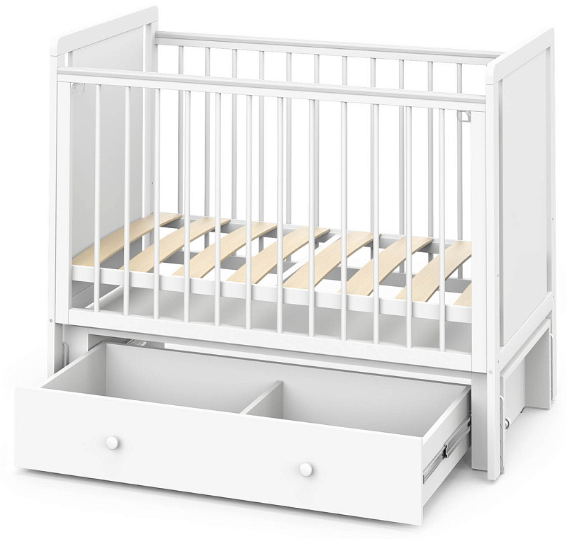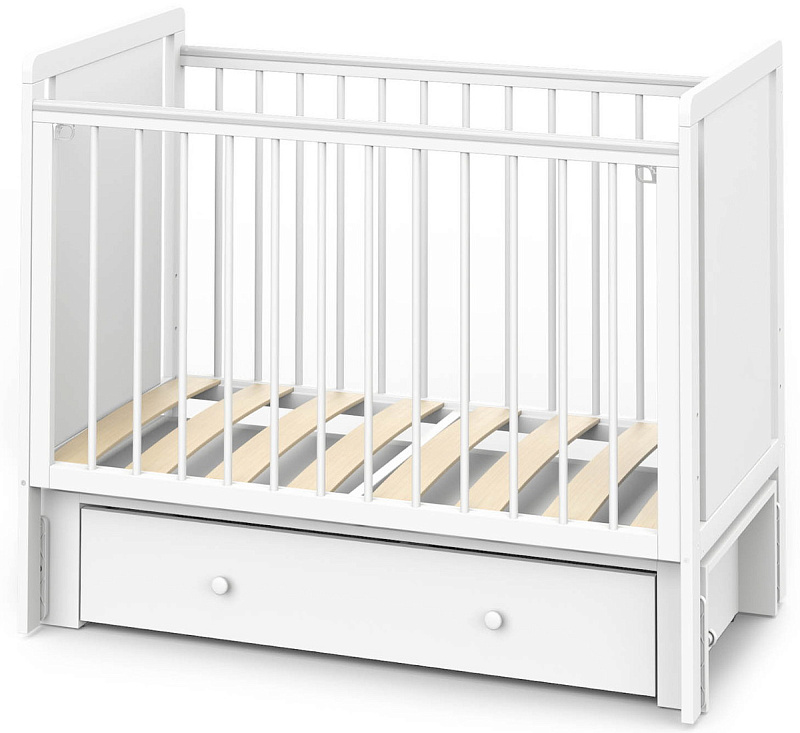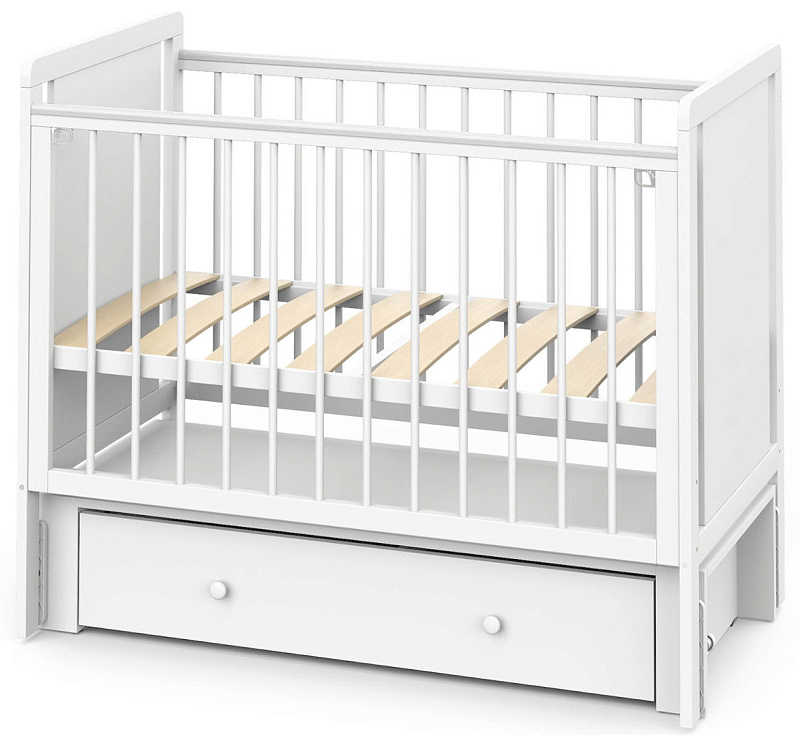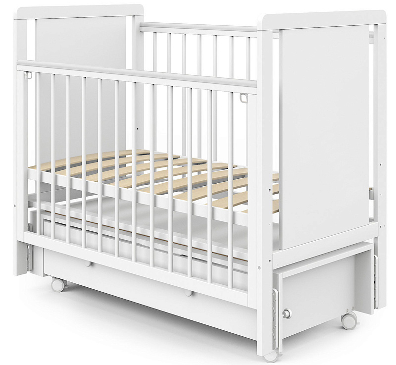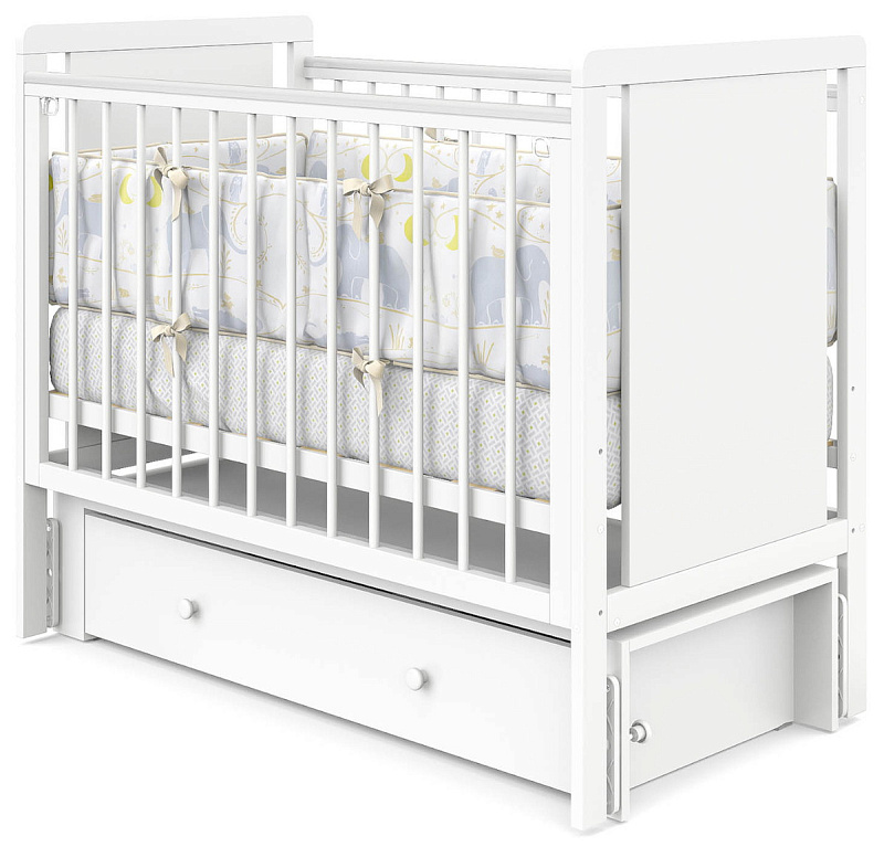 Детская кроватка Indigo Classic маятник, колеса,ящик белая аляска