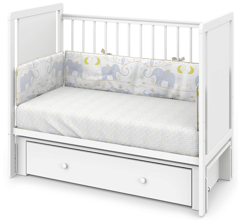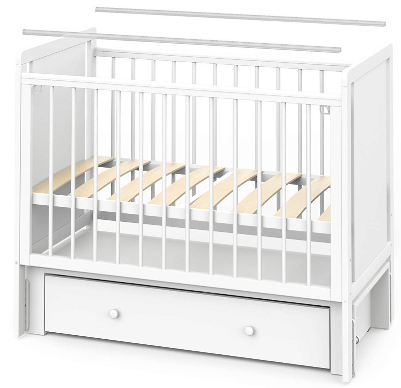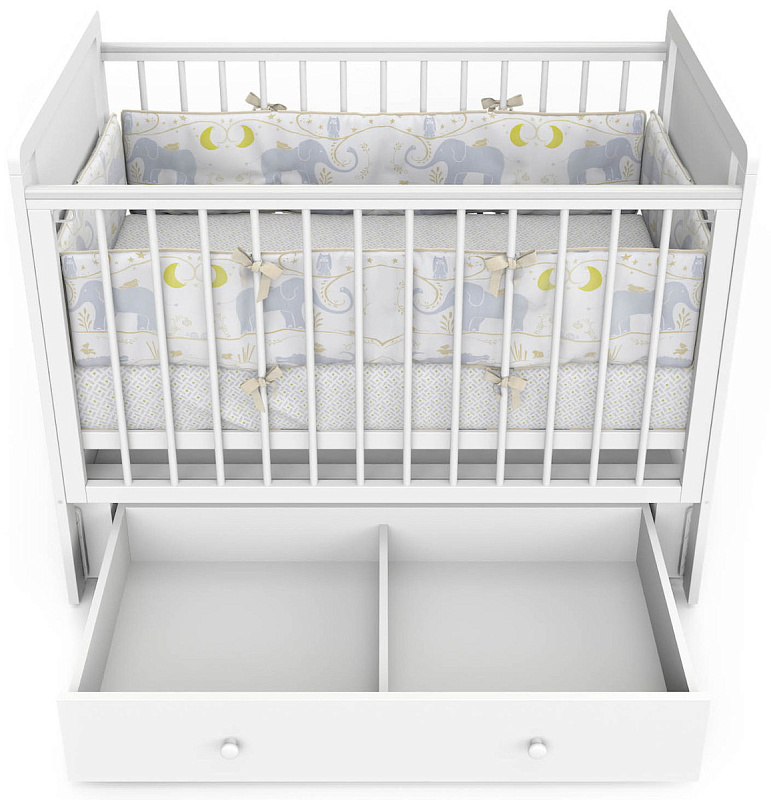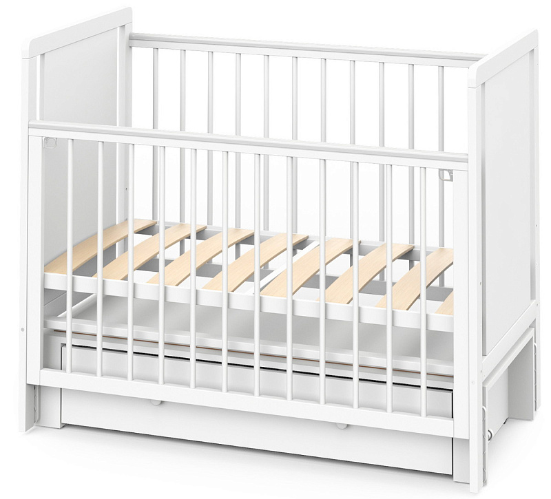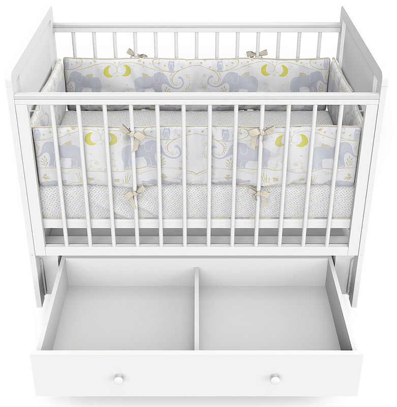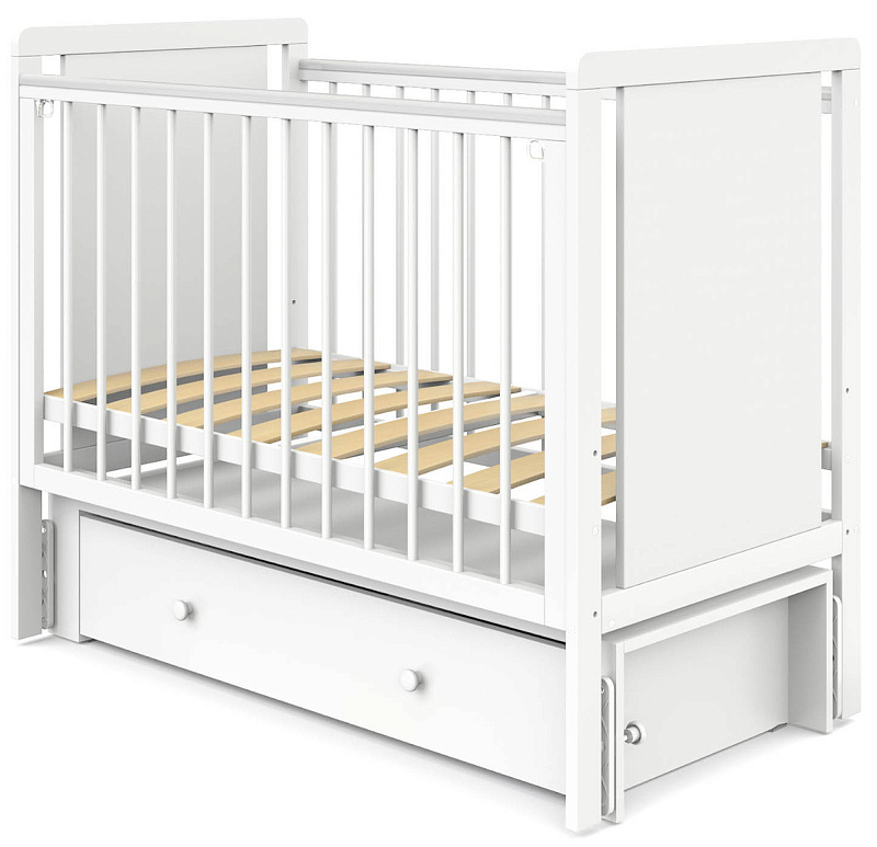 Детская кроватка Indigo Classic маятник, колеса,ящик белая аляска