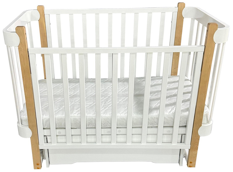 Детская кроватка Кедр Adele 2 поперечный маятник c ящиком белый/бук