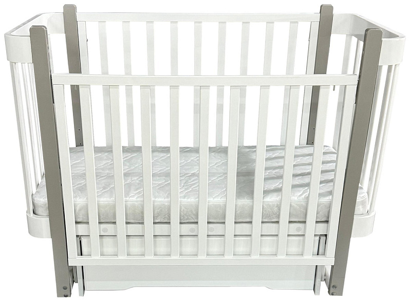 Детская кроватка Кедр Florencia 2 поперечный маятник c ящиком белый/серый