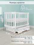 Ложе кроватки имеет 4 положения по высоте: от пола (25 см±1 см; 34 см±1-2 см; 40,5 см±1-2 см; 47 см±1-2 см).